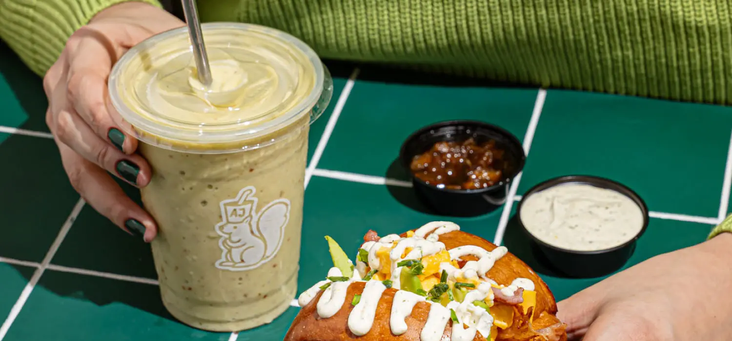 Ardilla Rose: Fresa, mora, arándanos con leche y helado de vainilla, coronados con yogurt griego.