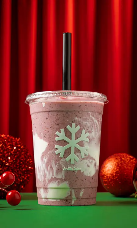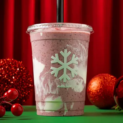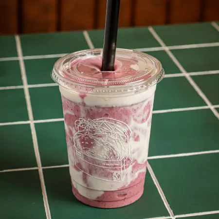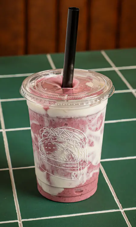 Fresa, mora y arándanos mezclados con leche y helado de vainilla, coronados con yogurt griego. Cremoso, berry y totalmente irresistible.