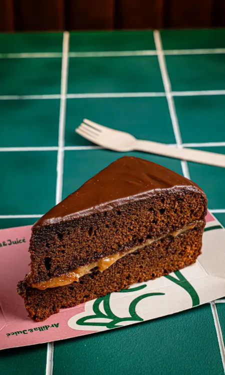 Bizcocho chocolatoso con un relleno generoso de arequipe.